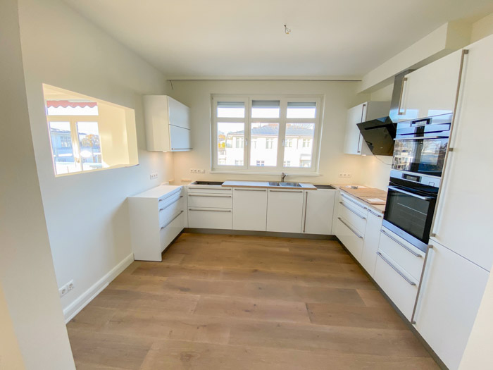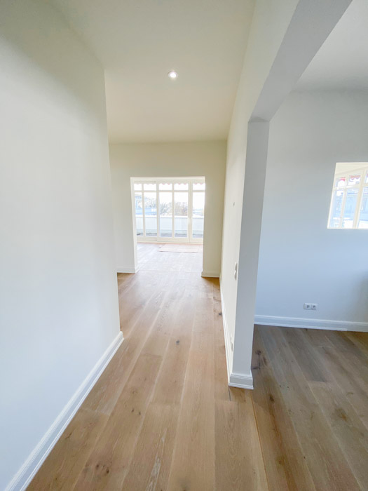 Projektart: Die Dachgeschosswohnung mit umlaufender Dachterrasse wurde saniert und die Wohnräume aufwendig umgestaltet.