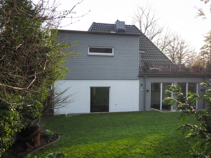 Umbau / AnbauProjektart: Die Wohnfläche des Einfamilienhauses wurde durch einen Anbau zum Garten erweitert. Im Zuge der Arbeiten wurde auch im gesamten Gebäude die Elektrik neu verlegt.