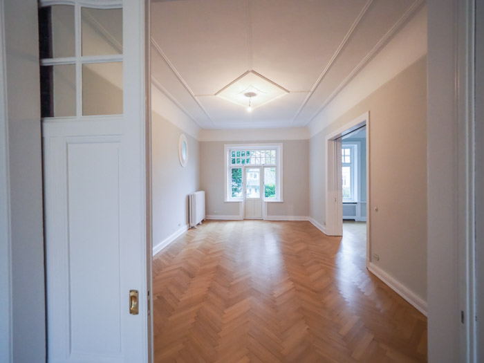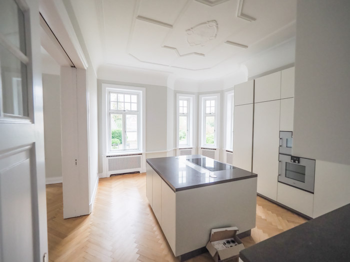Sanierung Umbau Fassadensanierung GartengestaltungProjektart: Die Jugendstilvilla wurde aufwendig von Innen und Außen saniert und umgebaut. Der Grundriss erhielt ein neues Wohnraumkonzept. Die Heizungsanlage und Haustechnik wurde erneuert. Im Kellergeschoss wurde die Horizontalsperre mit dem Paraffin Injektionsverfahren neu hergestellt und die Grundleitungen erneuert.