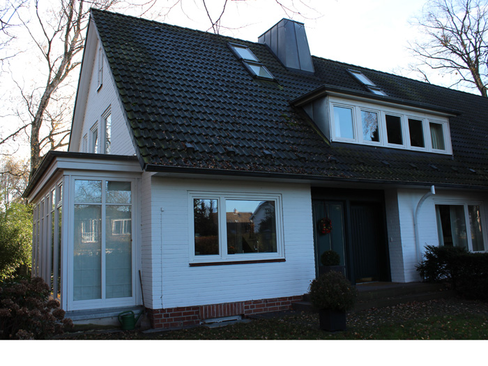 SanierungUmbau / AnbauProjektart: Das Doppelhaus aus den 50er Jahren wurde neugestaltet, technisch neu ausgestattet und mit einem Anbau erweitert.