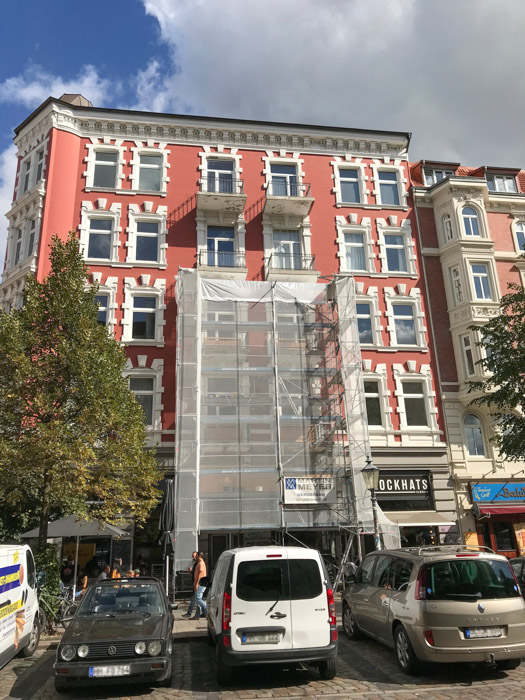 DenkmalschutzFassadensanierungBalkonsanierungBalkenkopfsanierungProjektart: 2012 wurde die Fassade des unter Denkmalschutz stehenden Wohn- und Geschäftshauses saniert. 2018 wurde die gesamte vordere Balkonanlage saniert bzw. neu errichtet. Im Zuge der Sanierung wurden auch die Balkenköpfe innerhalb der Wohnungen erneuert.